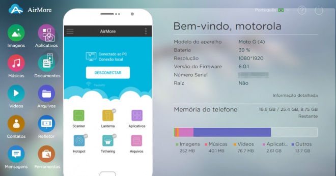 Como usar o AirMore para gerenciar o smartphone pelo PC